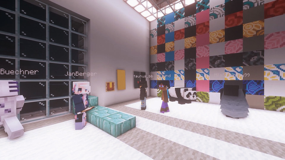 Minecraft gallery space, exhibitions, events, streamed openings, member program
