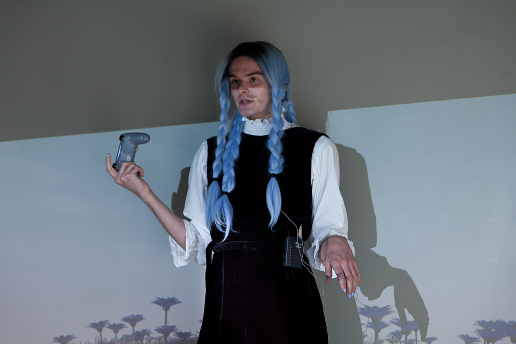 lecture performance, live gaming, Celine Dion re-enactment, 2k video, full length 00:04:36, champagne pyramid, chain coif